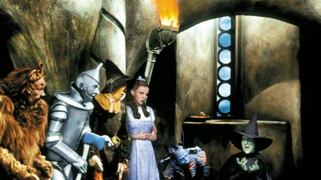 The metal torches were far from incidental pieces of the set — they’re highly visible, and Hamilton’s Wicked Witch uses one of them to light her broom on fire in order to set the hapless Scarecrow (Ray Bolger) ablaze.