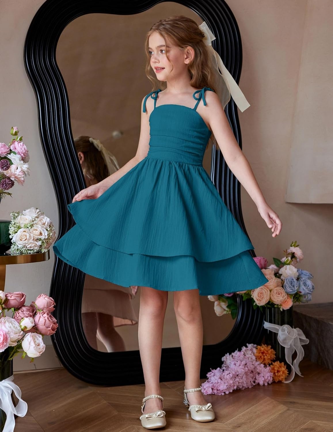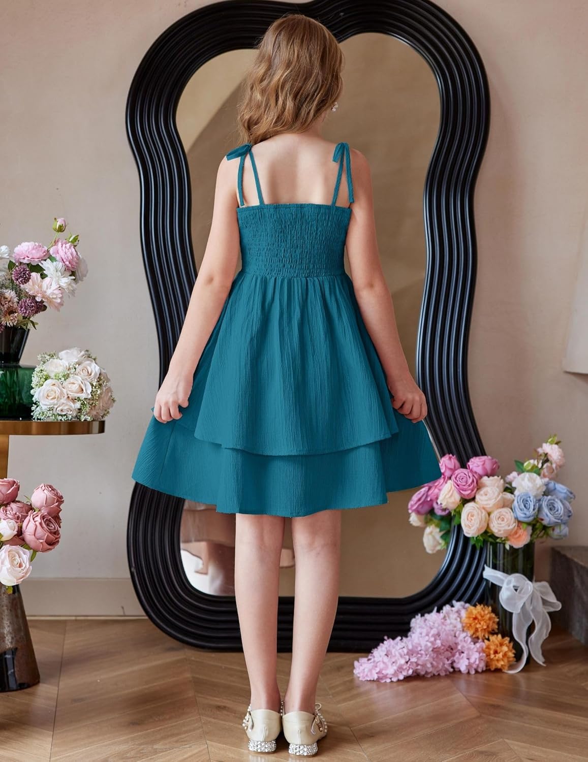 Girls tiered dress is suitable for various occasions, including vacation, beach, and daily wear, and is also appropriate for formal events like weddings and parties.