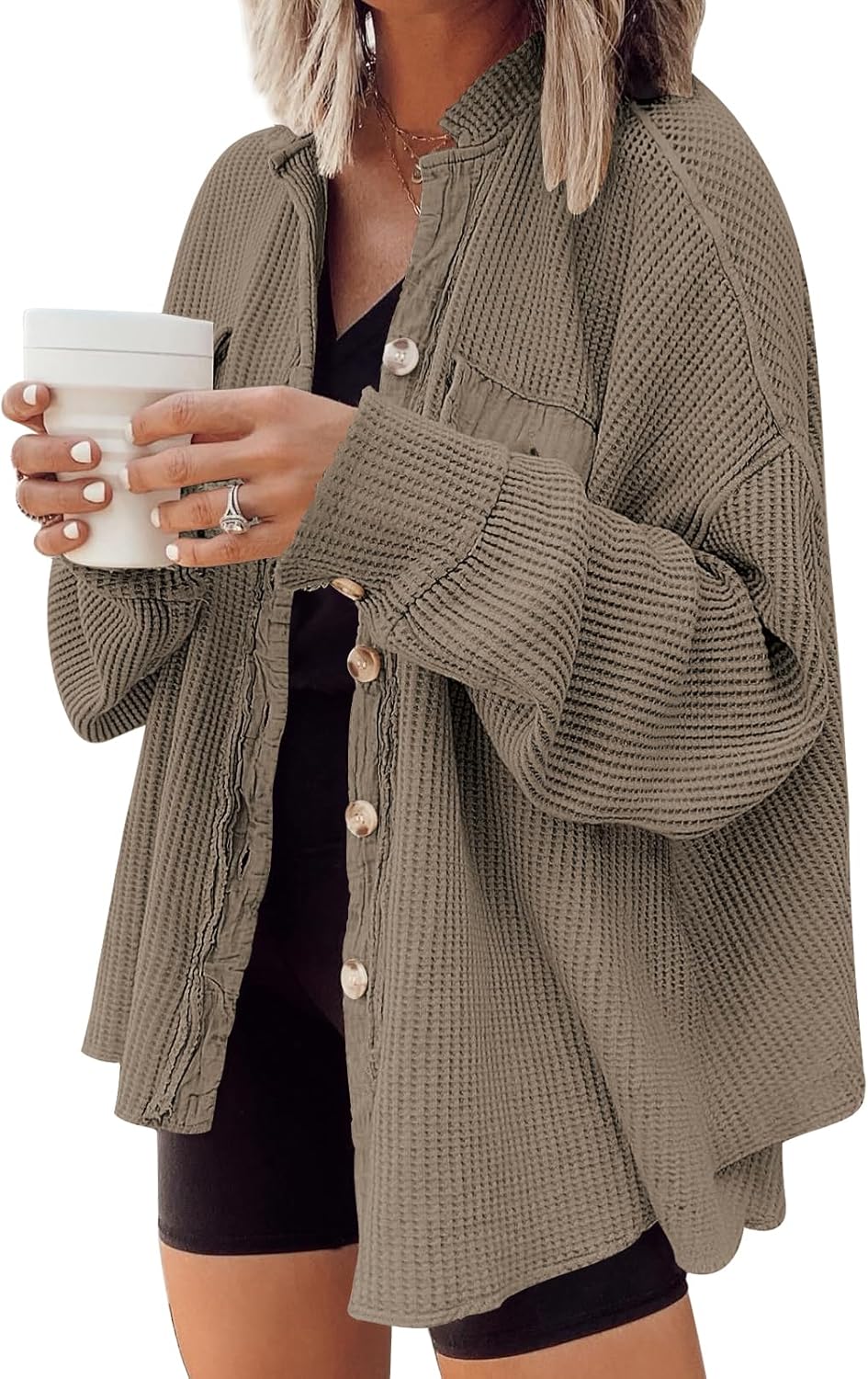 AUTOMET Womens Waffle Knit Shacket Jacket Winter Clothes