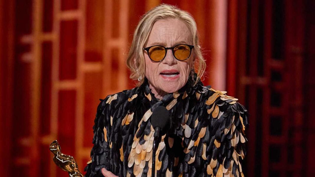 Amy Madigan accepts the Oscar® for Actress in a Supporting Role during the 98th Oscars® at the Dolby® Theatre at Ovation Hollywood on Sunday, March 15, 2026. Credit/Provider: Trae Patton / The Academy. Copyright: ©A.M.P.A.S.