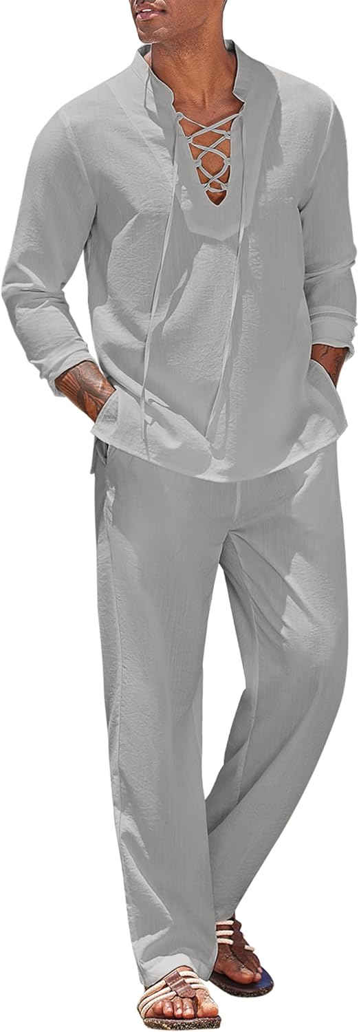 COOFANDY Men’s Long Sleeve Henley Shirt and Pants Set Summer Beach Outfits