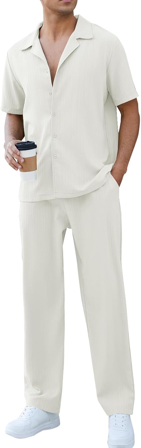 FITMENS Stylish Mens Casual Button Down Shirt Pants Set 2 Pieces