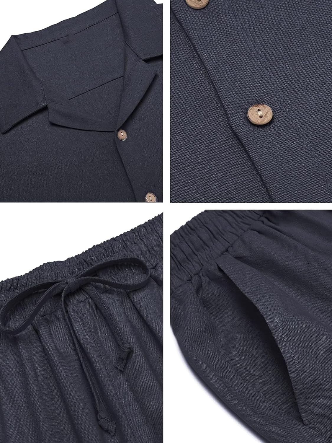 Men’s 2 Piece Outfits Casual Beach Short Sleeve Button Down Shirts Loose Pant Sets Summer Vacation Walking Outfits